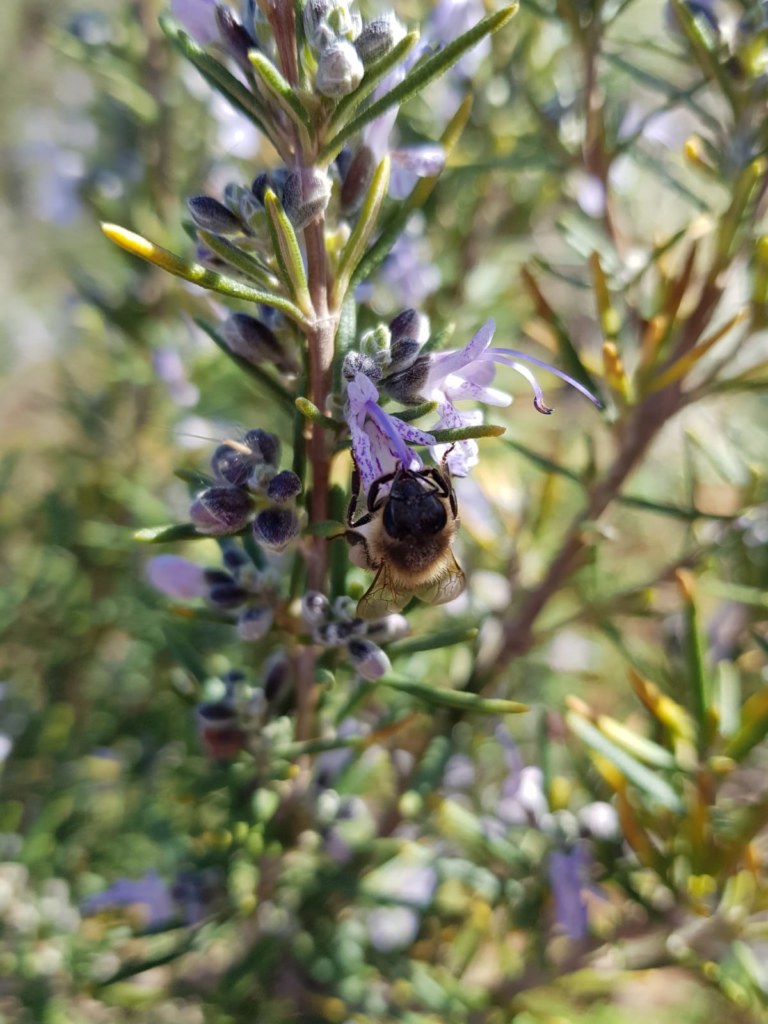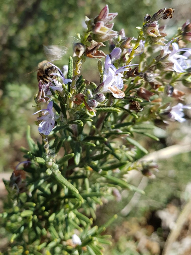 Abejas librando néctar en los Romeros